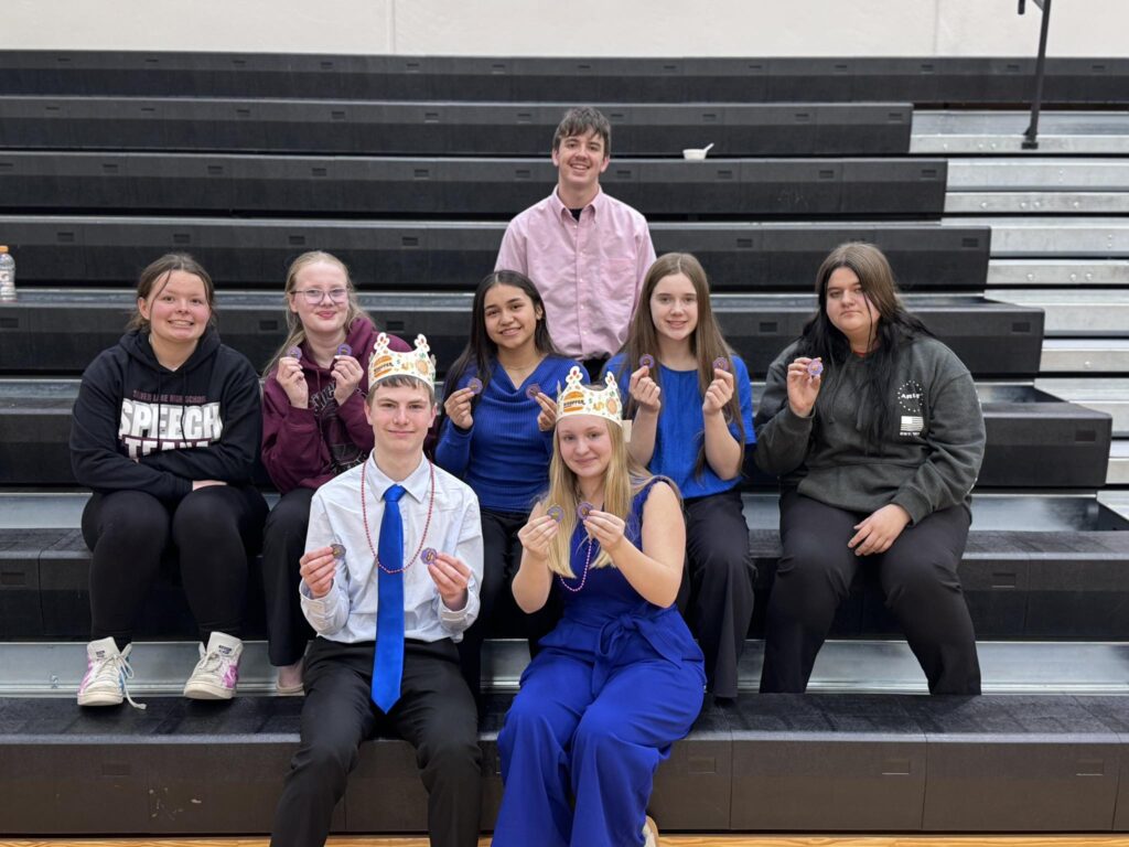 Congratulations to the Mustangs’ speech team on a great day at the Minden Speech Meet. They placed fourth as a team in the Novice Division. Izzy Whitten and Graham Karr each earned the championship title in their individual events. Whitten won Persuasive, and Karr won Extemporaneous. For group events, the OID composed of Whitten, Karr, Araya Gomez, Ava Sorensen, and Alivia Pankoke placed 5th. For duets, Gomez and Sorensen placed 4th, and Aleigha Mankhey and Pankoke placed 5th.