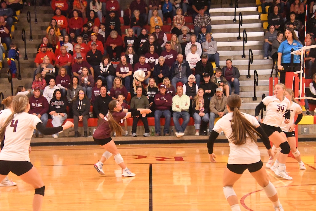 The Mustangs started off to a slow start, losing the first set 22-25, but found their rhythm in the next three sets, winning 27-25, 25-23, and 22-11. With the first set not going the Mustangs’ way basically the whole year, they fueled back with aggressive offense and some great defense to win the game and advance to the Sub-District Championship. The offense for the Lady Mustangs shone, out-killing the Hornets 47-37. Senior MaKenna Karr led the way with 23 kills, supplying the power for this Mustangs’ offense. Anchoring the back row was senior Sophie Schmidt, who had 56 digs and 29 serve receptions. Schmidt etched herself in Mustang history, racking up 2,000 career digs and 2,000 career serve receptions in the match, and also became the D2 state leader in career digs, an unbelievable feat. With Schmidt’s heroics and Karr’s power, the Lady Mustangs were able to win this one and advance to the Sub-District Championship against Red Cloud the next night.